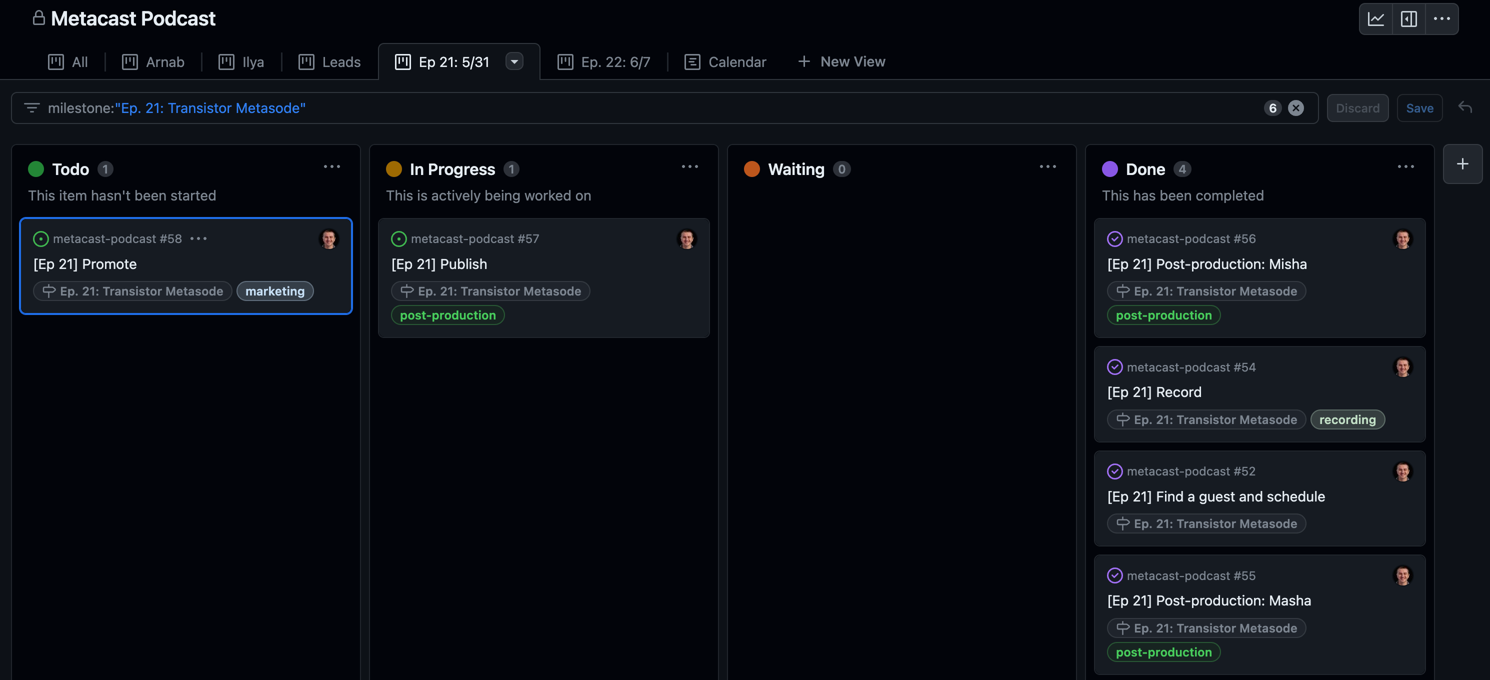 We got a little technical and geeked out about managing our podcast publishing workflow in GitHub, which involves scripts, a Kanban board, and a lot of manual work.