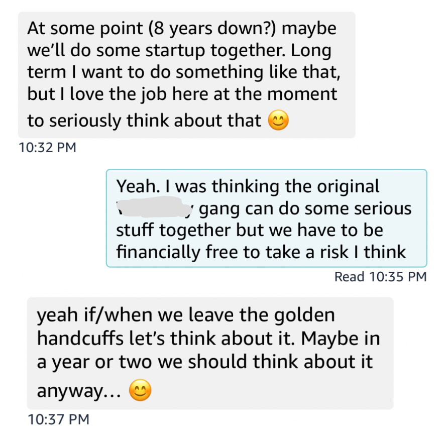 The chat between Arnab and myself a few years ago, which ended up being prophetic (except the 8 years part, we started a lot sooner).