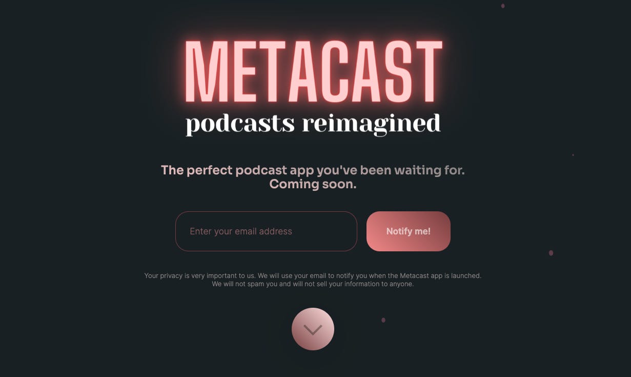 In preparation for the public unveiling, we launched a landing page where you can enter your email address to get notified when the app ships. Feel free to go to metacast.app and put your email right in.