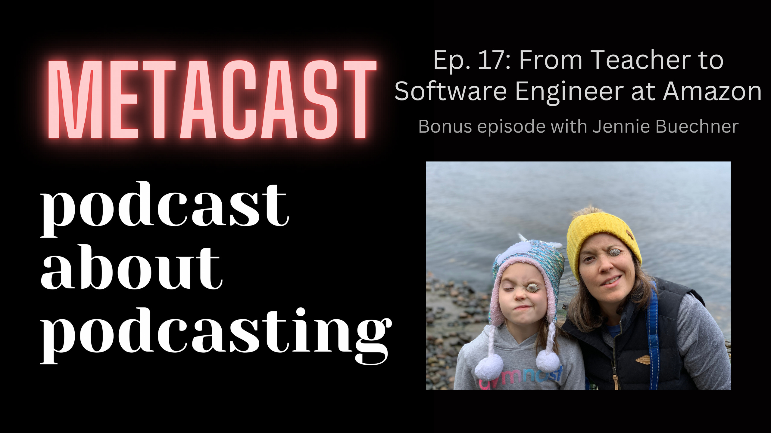 Jennie Buechner joined us as a Sr. Software Engineer in early October. Some of you may remember her as a super fan of the Metacast podcast. Jennie was a guest on our bonus episode (ep. 17) where we talked about her transition from a teacher to a senior engineer at AWS. Jennie called us “minor podcasting celebrities,” so she definitely passed the test for sense of humor and culture fit.